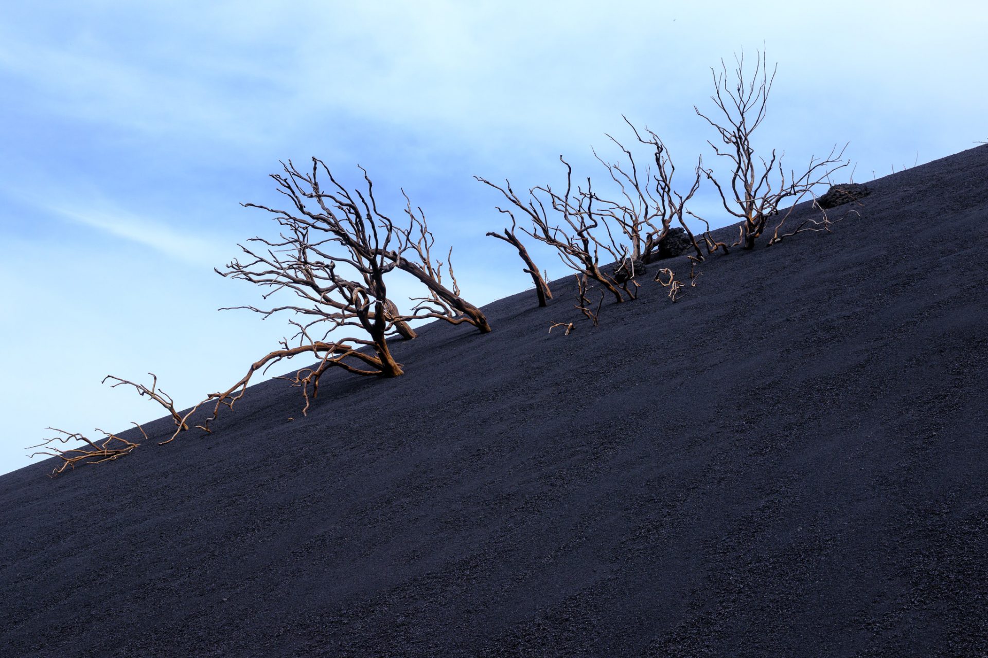 The Fuji GFX 100RF was the perfect photographic companion for this hike. Light, versatile and no need for lens-swaps (volcanic dust & sensors don’t go well together). The digital zoom gave me plenty flexibility. I also experimented with different aspect ratios throughout the hike, which helped match the framing to the drama of the landscape. Some scenes demanded wide. Others — the dead trees, the cone up close — called for something tighter and more intimate.